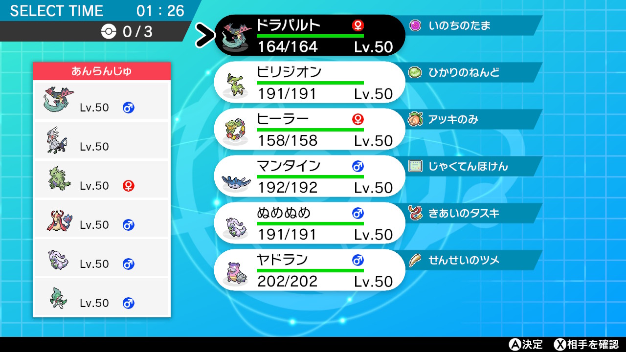 ってことで、初手ヌメルゴン、後ろキュワワー、ドラパルトエースで行くぜ行くぜぇ!!